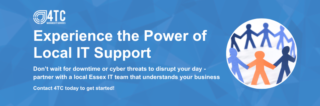Choosing a local IT partner makes a measurable difference. With local IT support in Essex from 4TC, you get faster service, personalised solutions, and the reassurance of a trusted team nearby. We help your business stay secure, productive, and ready for whatever comes next.